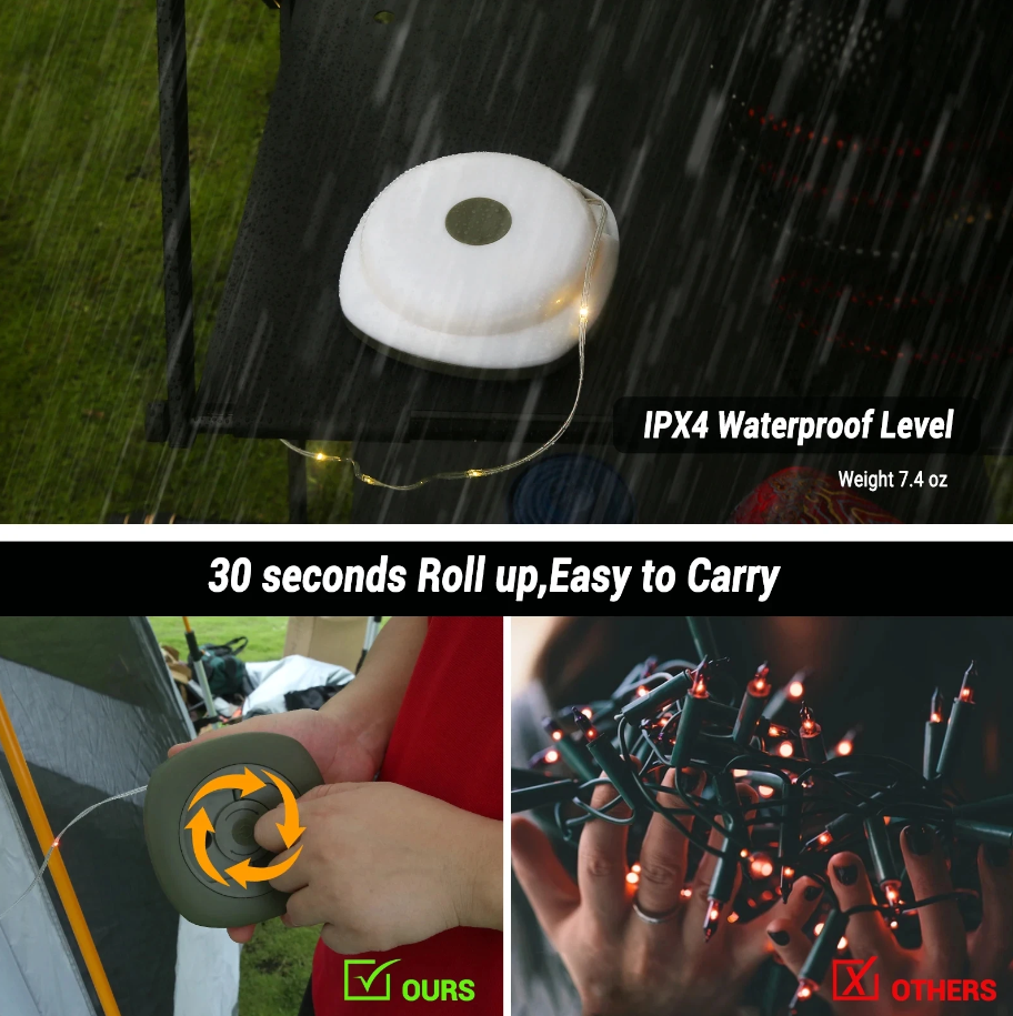 Cleverly combining camping lights and atmosphere lights, solving the problem of lamp strip recycling through hand operated devices, creating various romantic atmospheres.