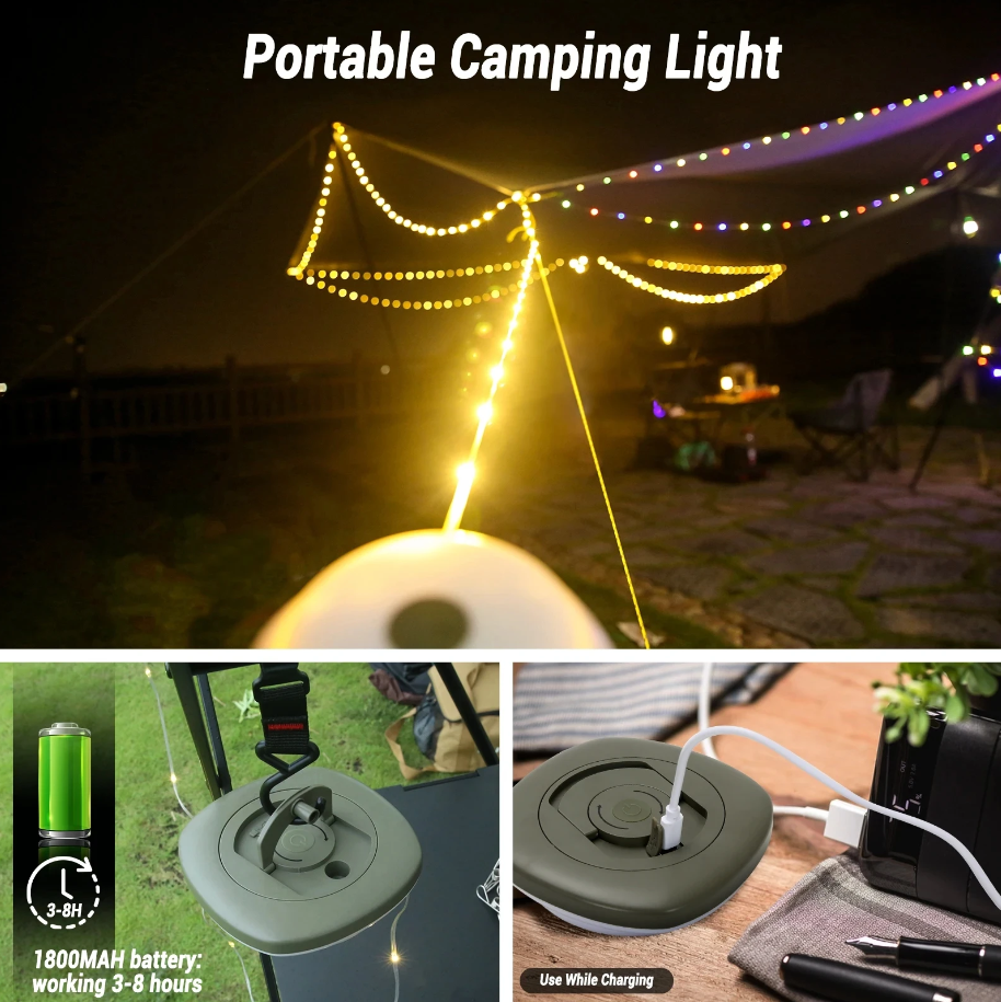 Camping String Lights,33Ft Light with Lanterns (2 in 1 Design),Camping Lights 2000mAh,IPX6 Waterproof,Rechargeable Flashlights